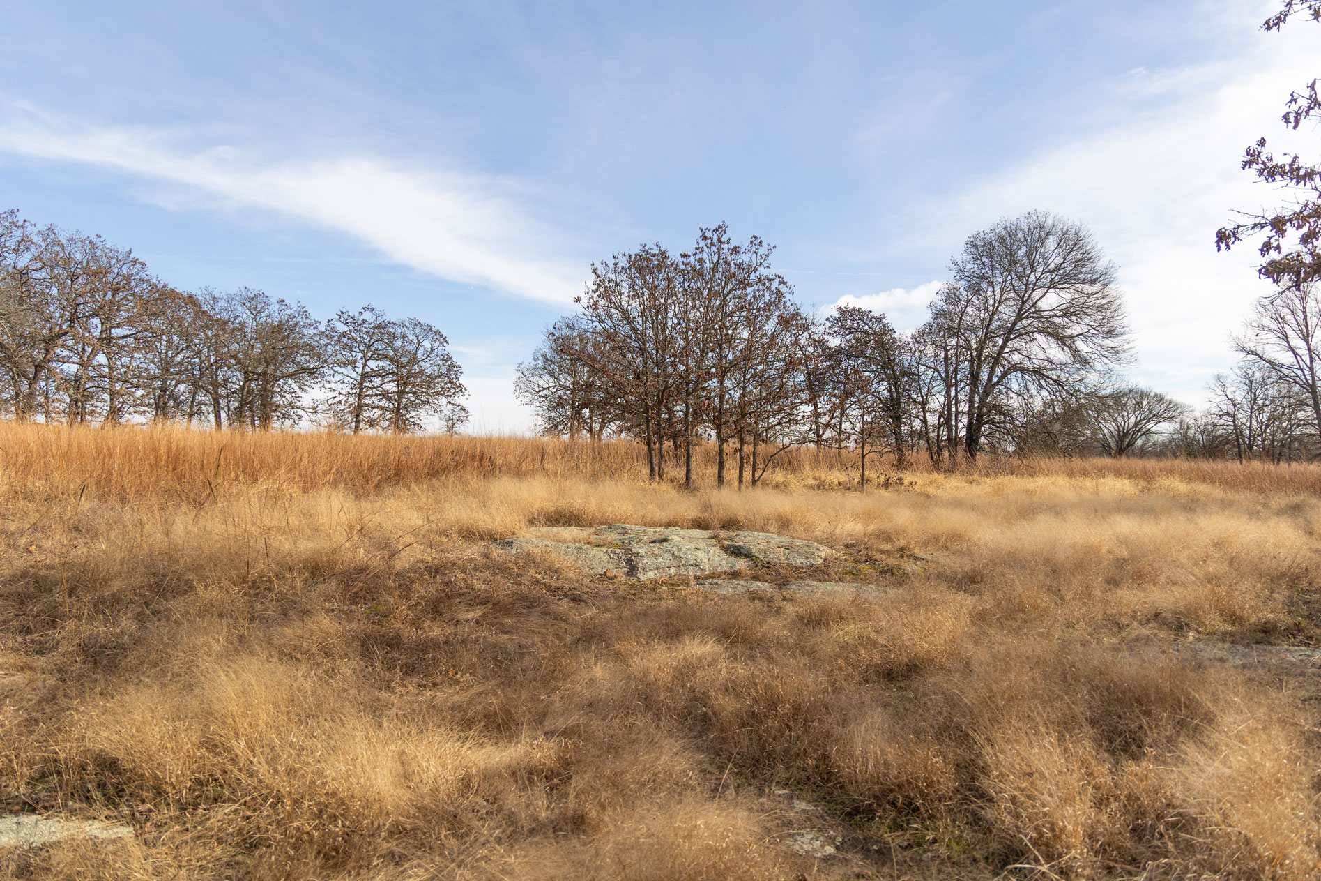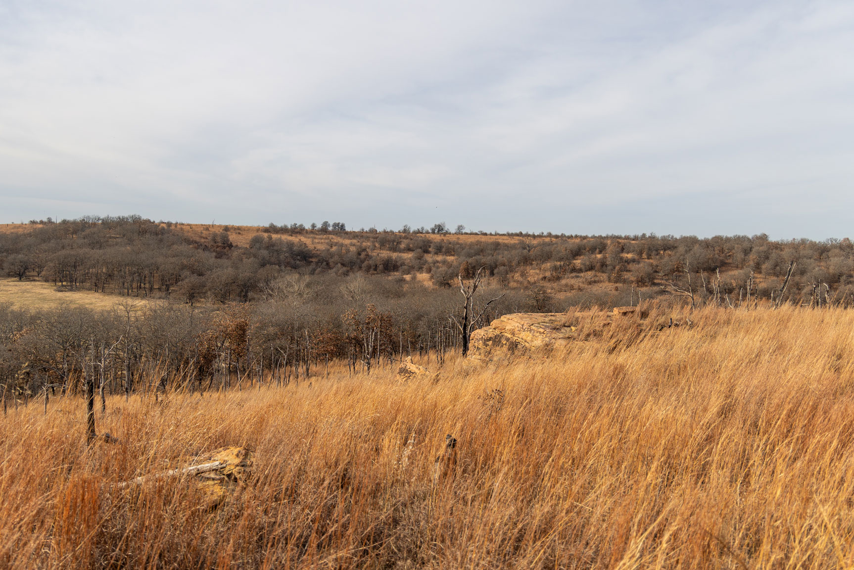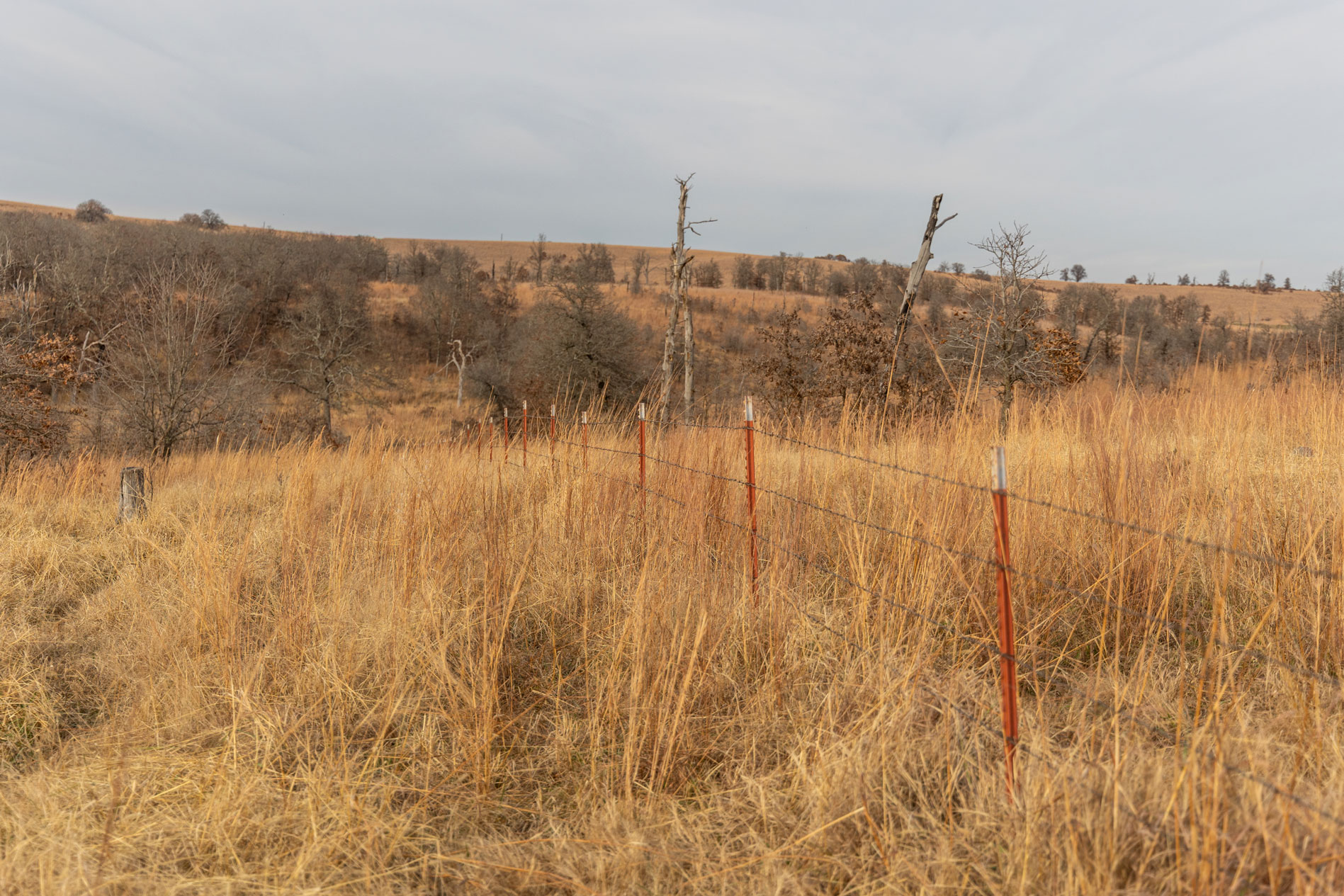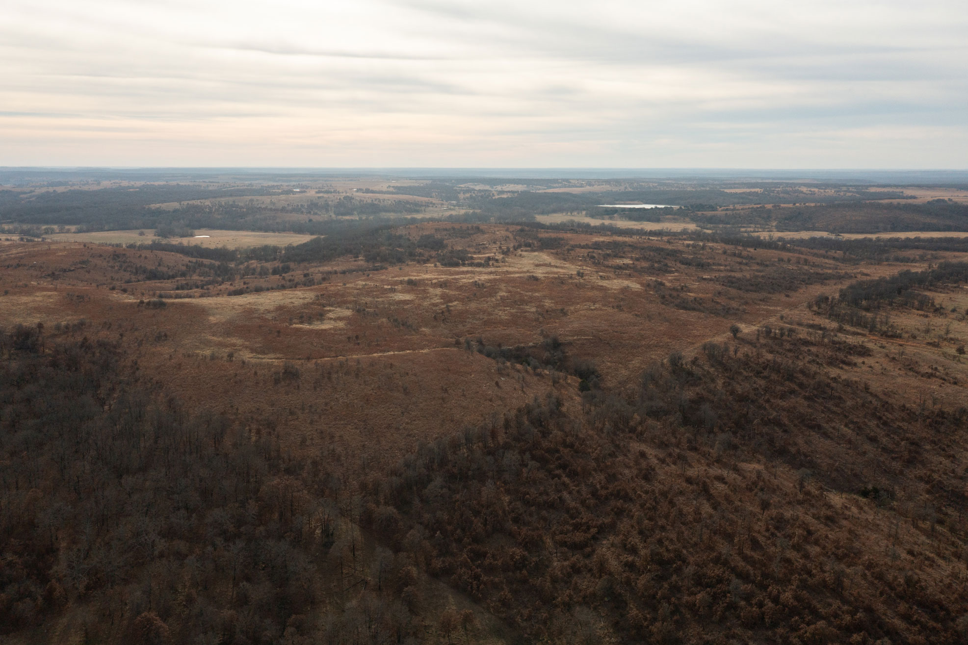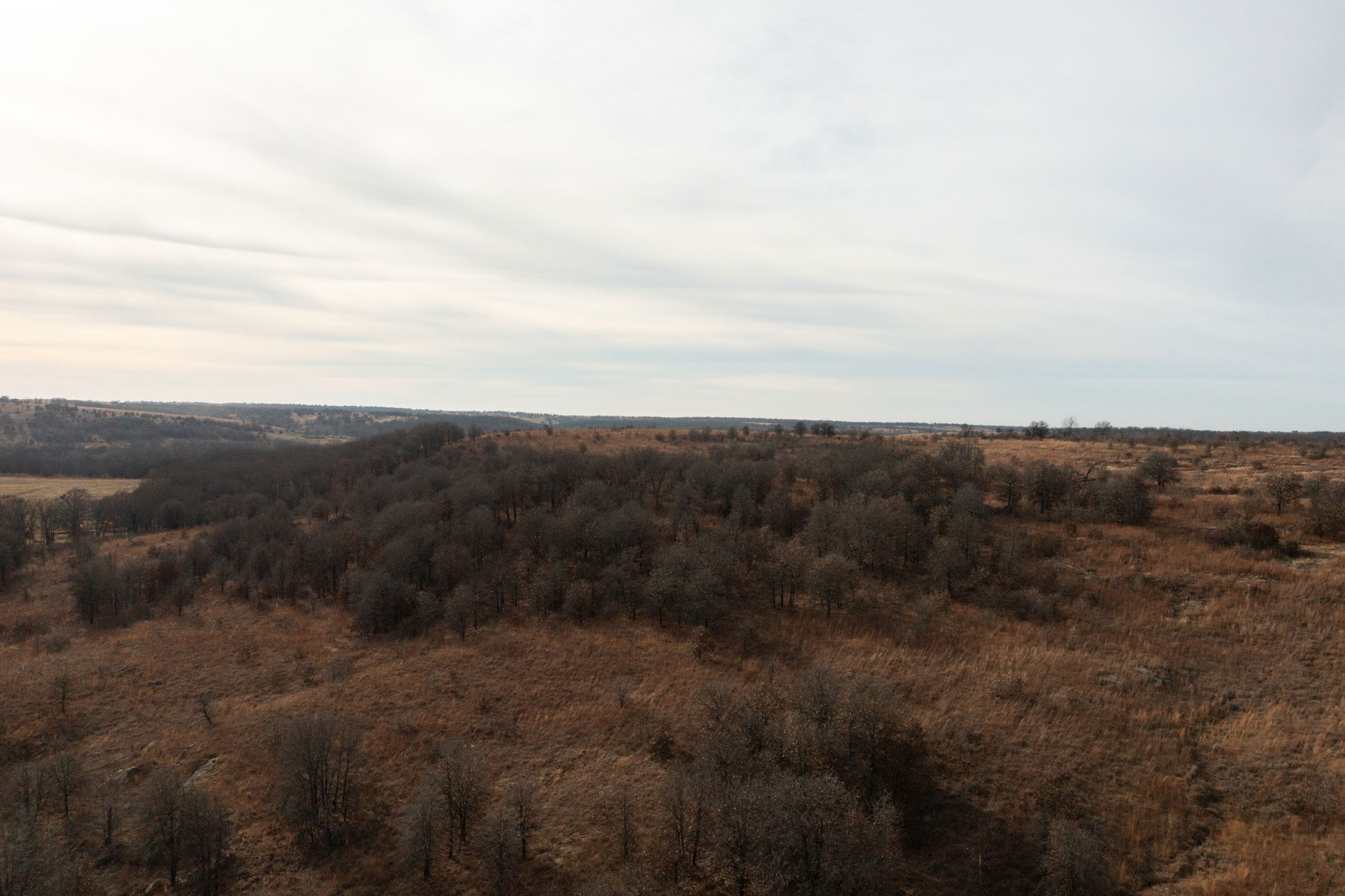 The ranch contains a mosaic of tallgrass prairie, cross timbers vegetation and riparian bottom land. From the peaks of the Chautauqua hills to the winding creek bottom, the topography on the property includes approximately 250ft of rugged elevation changes. Sandstone soils support native grasses, forbs, and legumes with a variety of upland woody species and hard mast producing bottomland timber. The mile of California Creek truly enhances the unique qualities of the ranch.