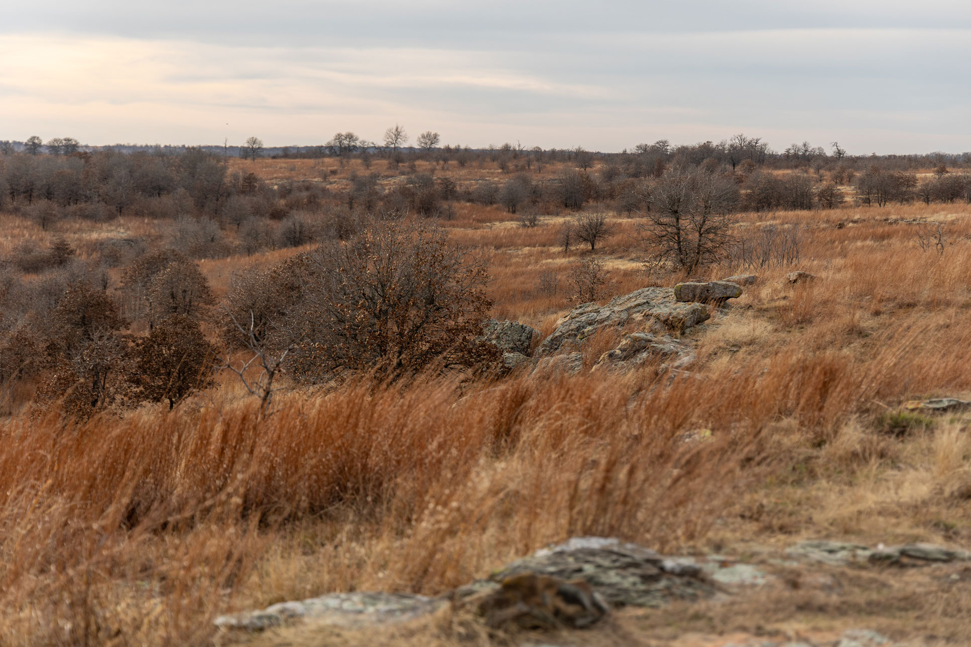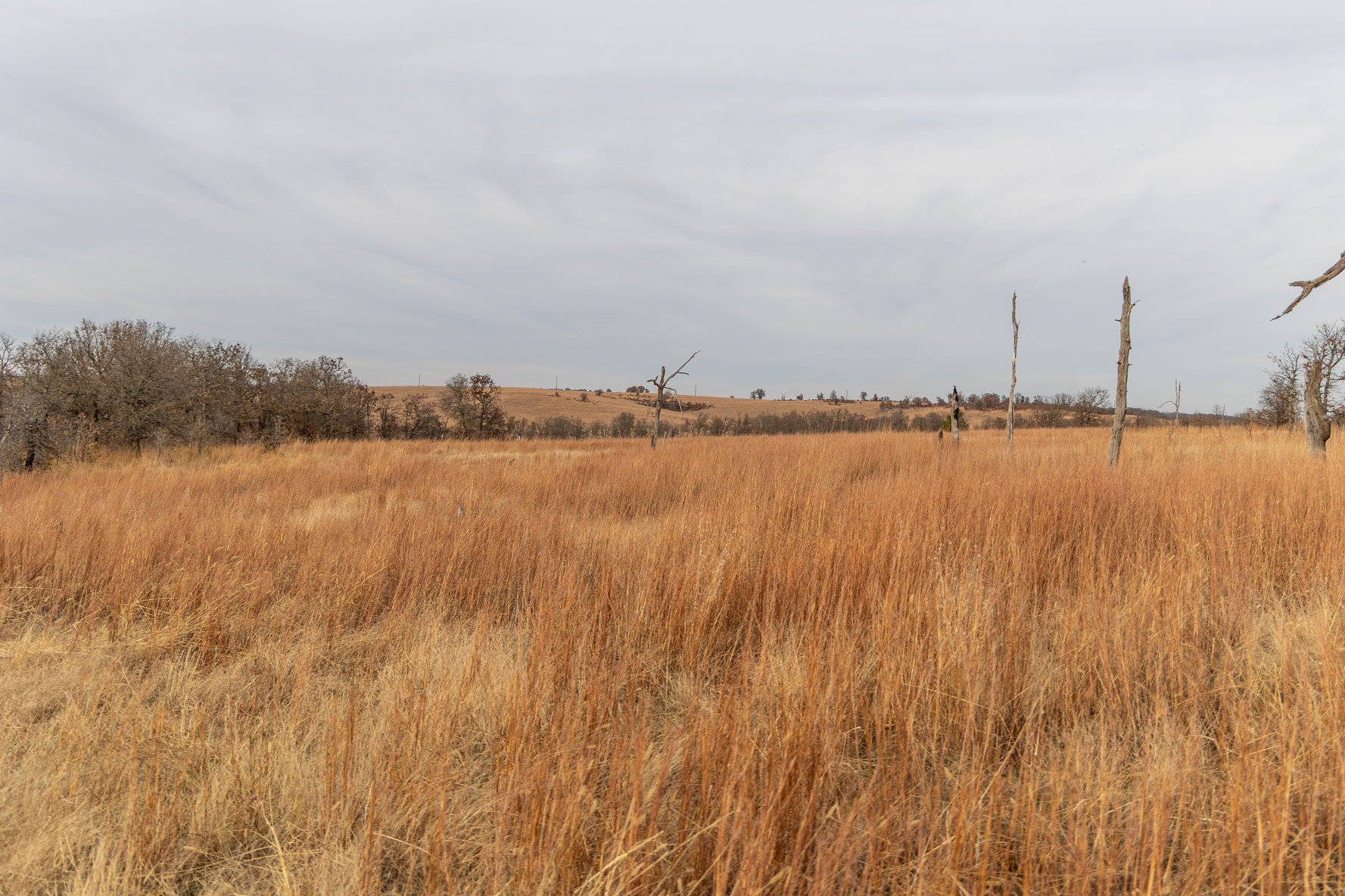 The upland prairie forages are represented by the big four grasses, including big bluestem, Indiangrass, switchgrass and little as well as other native grasses, forbs and legumes. These Niotaze- Darnell complex and Stephenville- Darnell soils sustain the upland forages along with post oak, blackjack oak and hickory trees. These plants, and many others, are important ingredients of the diverse ecological balance of the tallgrass prairie and cross timbers ecoregions.